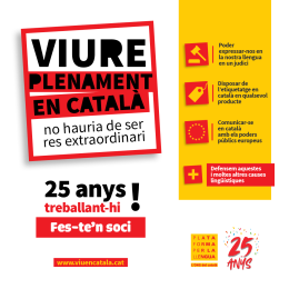 25 anys després, estem orgullosos d'haver aconseguit grans avenços pel que fa a la normalització i promoció de la llengua catalana, orgullosos de treballar per la defensa dels drets lingüístics dels seus parlants. Però a la vegada som conscients que no n'hi ha prou. Per això, des de la Plataforma llancem la campanya «Viure plenament en català no hauria de ser res extraordinari», amb espots sarcàstics que ens mostren que moltes petites coses, com rebre l'atenció telefònica en català, encara no estan plenament normalitzades. Per això, volem ser més forts: volem ser més. Si amb 18.000 socis hem aconseguit tot el que hem aconseguit, només que cada soci de l'entitat en portés un altre, podríem arribar encara molt més lluny.