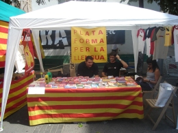 Aquest any, la Plataforma per la Llengua Maresme hem tornat a muntar la taula informativa a Blanes, a la Diada per l'Autodeterminació dels Pobles, on teníem a disposició del públic adhesius, les targetes de la campanya "Si us plau, parla'm en català ", samarretes, bosses, la revista de la Plataforma per la Llengua, "La Corbella " i guies "Què faig si...? ", a més d'altres materials informatius i de merxandatge.