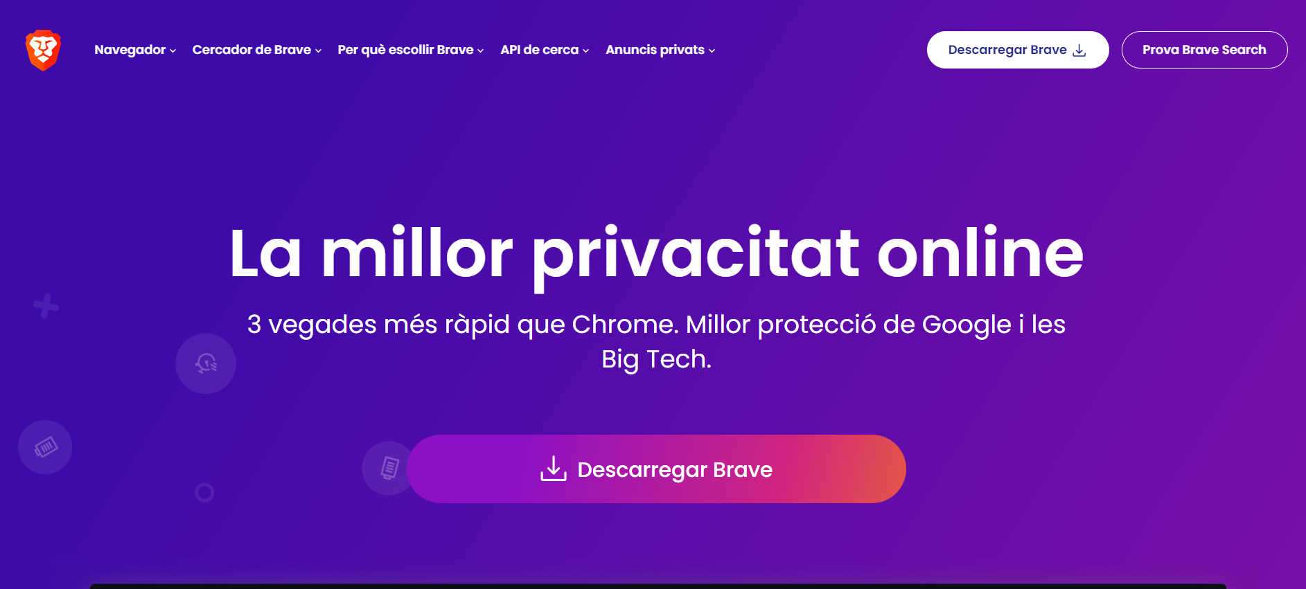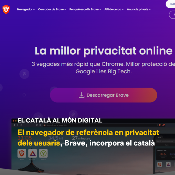 Plataforma per la Llengua ha aconseguit que el català s'incorpori totalment a Brave, un dels navegadors web referents pel que fa a la privacitat dels usuaris. La versió en català ja està disponible tant en la versió d'escriptori com en l'última versió per a mòbils (1.64x), i l'organització es felicita especialment per l'èxit, perquè es tracta d'un navegador que, a diferència de Google, no invisibilitza els resultats en català en el seu cercador.