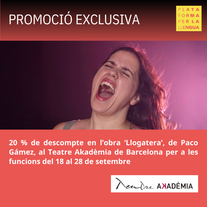 2 - Entra en aquest enllaç i compra les teves entrades per a les funcions del 18 al 28 de setembre per gaudir del descompte: Fitxa de l'esdeveniment - Teatre Akadèmia