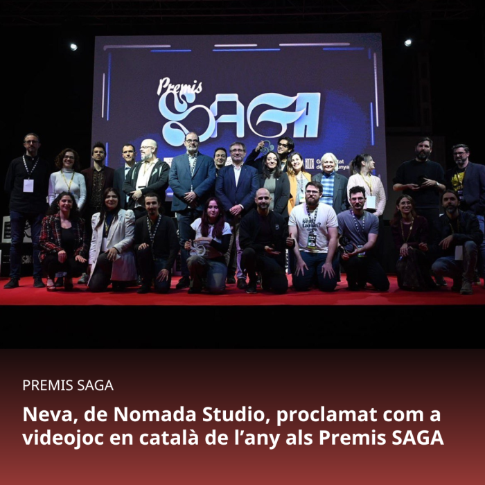 Neva, de Nomada Studio, ha estat proclamat com a videojoc en català de l'any aquest dissabte, durant la segona jornada de SAGA, saló del gaming, un esdeveniment que va arrencar ahir i s'allargarà fins diumenge a la tarda a la Farga de l'Hospitalet de Llobregat. En aquesta segona jornada del saló, organitzat per Plataforma per la Llengua amb el suport de la Generalitat de Catalunya, el protagonisme l'han tingut els creadors de videojocs, especialment els guanyadors dels quarts Premis SAGA. Durant aquest dissabte, també han arrencat les competicions de la Copa de les Estrelles dels millors equips de la competició LIOP del League of Legends (LOL) i el primer torneig internacional oficial de Super Smash Bros que es retransmet en català. SAGA, que arriba enguany a la quarta edició, té per objectiu ajuntar tots els actors del sector dels videojocs dels territoris de parla catalana i demostrar-los el valor de la llengua per connectar amb el públic.