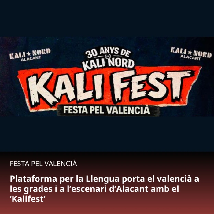 Plataforma per la Llengua anima la ciutadania a participar en el KaliFest, acostar-se a les activitats del mes de març i viure l'esport i la festa en valencià, perquè només compartint espais, celebracions i complicitats la llengua es consolida com a llengua de trobada i de futur a Alacant.
