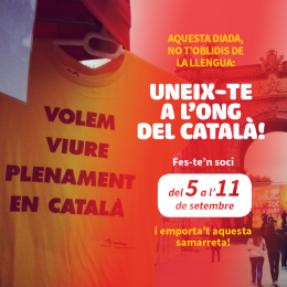 Del 5 a l'11 de setembre, totes aquelles persones que es facin sòcies de l'ONG del català rebran de regal la samarreta més reivindicativa de l'entitat, editada gràcies a la col·laboració de la Fundació Joan Brossa i l'empresa Ddeloi: "Volem viure plenament en català". Fes-te'n soci omplint aquest formulari!