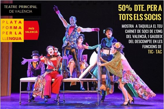 Del 21 de desembre de 2018 al 20 de gener de 2019, els socis de Plataforma per la Llengua tenen l'ocasió d'anar al Teatre Principal de València i gaudir de l'espectacle musical Tic-Tac.