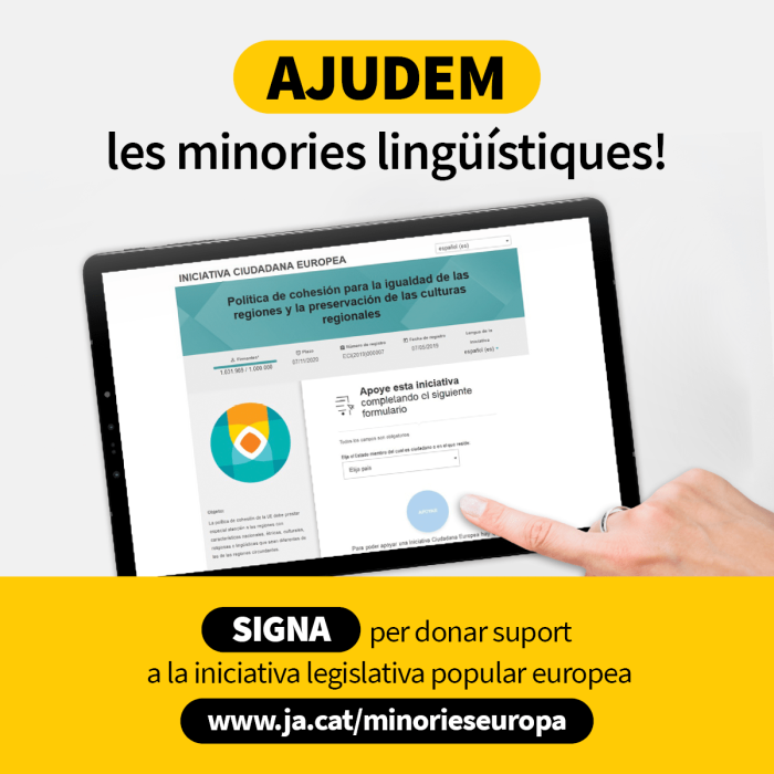 La iniciativa, que compta també amb el suport d'entitats com ELEN i FUEN entre d'altres, es presenta amb el nom de "Política de cohesió per a la igualtat de les regions i la sostenibilitat de les cultures regionals" i té l'objectiu d'assolir més d'un milió de signatures a l'àmbit local i alhora un nombre significatiu de signatures com a mínim a set països de la UE.