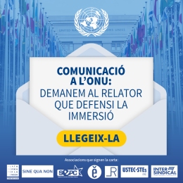 Set organitzacions de la societat civil s'han unit per reclamar al relator de minories de les Nacions Unides, Fernand de Varennes, que actuï per frenar la campanya dels tribunals espanyols que busca tombar la immersió i imposar la vehicularitat del castellà al sistema educatiu de Catalunya. El relator, una figura tècnica que vetlla perquè els estats respectin els drets de les minories, ja havia comminat les autoritats espanyoles l'any 2020 a "revisar qualsevol mesura que pugui reduir la proporció d'ensenyament que es du a terme en la llengua minoritària catalana a les escoles públiques". Les set organitzacions que han signat la comunicació al relator són Sine Qua Non, Plataforma per la Llengua, el Sindicat d'Estudiants dels Països Catalans (SEPC), Fundació Escola Valenciana, Language Rights, USTEC-STEs i la Intersindical.