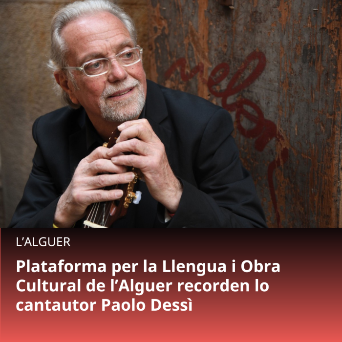 Lo 20 de agost de l'any passat, mos ha deixat Paolo Dessì, protagonista de la vida cultural i musical algueresa. Plataforma per la Llengua i Obra Cultural de l'Alguer volen recordar lo cantautor amb un acte que tenguerà lloc lo pròxim 18 de octubre.