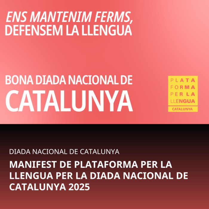 Mai renunciarem al nostre desig, que és també el nostre dret: volem viure plenament en català. Mantinguem-nos ferms, defensem la llengua!