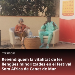 Plataforma per la Llengua va participar aquest dissabte, 6 de setembre, en el festival Som Àfrica de Canet de Mar, amb una lectura de rondalles africanes traduïdes al català i una xerrada de Pere Comellas, professor d'Estudis Portuguesos de la Universitat de Barcelona i membre del Grup d'Estudi de Llengües Amenaçades (GELA), com a expert en llengües africanes. Les activitats van aplegar una quarantena de persones, en un festival, Som Àfrica, que combina concerts amb tallers, gastronomia i cultura africana i reivindica la convivència per celebrar la diversitat i reforçar la cohesió social.