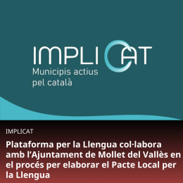 L'Ajuntament de Mollet del Vallès ha posat en marxa el procés de debat per elaborar el Pacte Local per la Llengua, una iniciativa que busca copsar la realitat lingüística de la ciutat pel que fa al català i proposar objectius i accions que permetin millorar-ne l'ús social. El consistori fa una crida a la ciutadania perquè prengui part activa en el procés participatiu, que serà la base per establir les conclusions i les propostes d'acció que sorgeixin en el marc del Pacte Local per la Llengua.