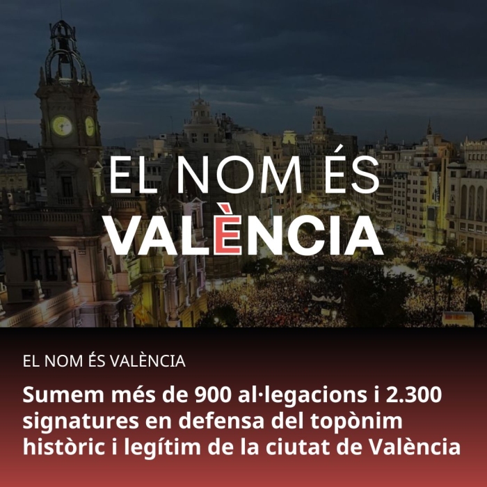 Sumem més de 900 al·legacions i 2.300 signatures en defensa del topònim històric i legítim de la ciutat de València