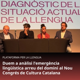 En aquest marc, el dissabte 27 a les 11 h, Plataforma per la Llengua va participar a la primera de les taules programades, "Diagnòstic de la situació de la llengua", en el qual van prendre part Miquel Àngel Pradilla (Rossell, 1960); catedràtic de sociolingüística de la Universitat Rovira i Virgil (URV); el filòsof Jordi Martí Monllau (Tortosa, 1967), autor de Llengua i identitat nacional. Per un nou discurs lingüístic als Països Catalans; i la filòloga Berta Serra (Sueca, 1998), coordinadora d'Educació de Plataforma per la Llengua; en un acte moderat per Francesc Marco-Palau (Tarragona, 1989), doctor en Història i secretari de l'entitat de defensa dels drets lingüístics.