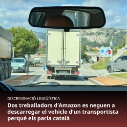 Plataforma per la Llengua fa pública una discriminació lingüística greu ocorreguda en el centre logístic UES4 d'Amazon, a la Zona Franca de Barcelona. En aquest cas, dos treballadors de la companyia estatunidenca es negaven a descarregar el camió d'una empresa de missatgeria perquè el transportista els parlava català. Per poder deixar els paquets, el personal d'aquest centre el volia obligar a parlar castellà assegurant que no era veritat que a Catalunya fos obligatori garantir l'atenció oral en català. Finalment, el transportista va aconseguir descarregar el camió, però, si no ho hagués fet, la seva empresa corria el risc de perdre 10.000 euros.