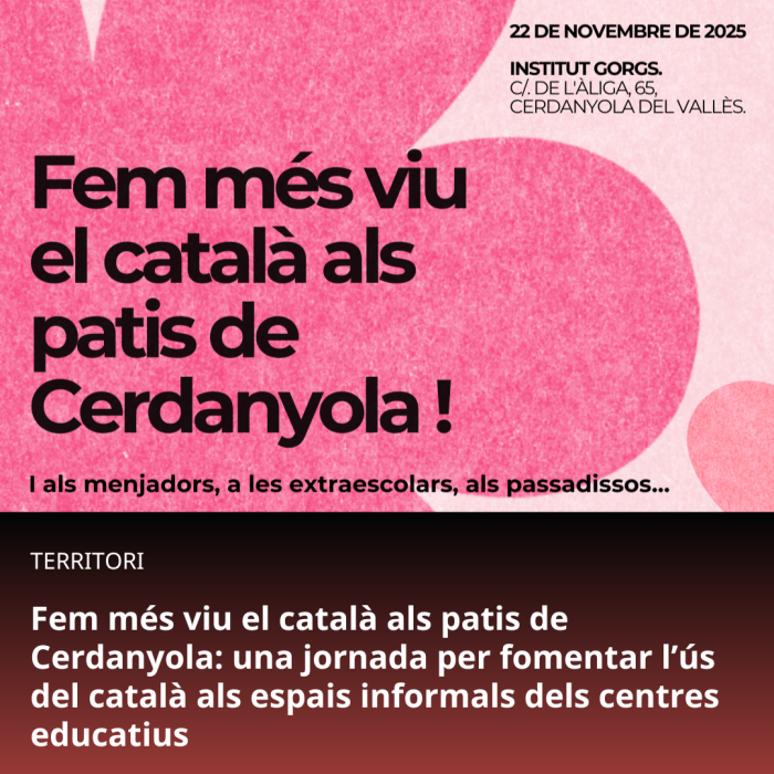 Fem més viu el català als patis, als menjadors i als passadissos de Cerdanyola. Fem que la llengua soni a tot arreu, en cada conversa, en cada joc i en cada relació del nostre dia a dia!