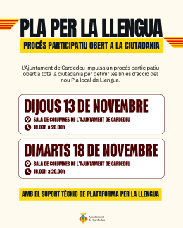 En aquestes sessions, es farà una breu presentació sobre algunes dades relatives a la situació del català a Cardedeu i es promourà el debat per a concretar objectius i accions per millorar-ne la situació, que versaran sobre aquests eixos: