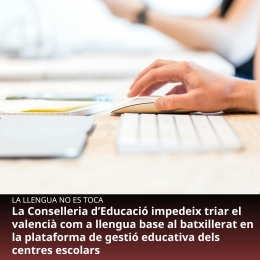 La Conselleria d’Educació impedeix triar el valencià com a llengua base al batxillerat en la plataforma de gestió dels centres escolars