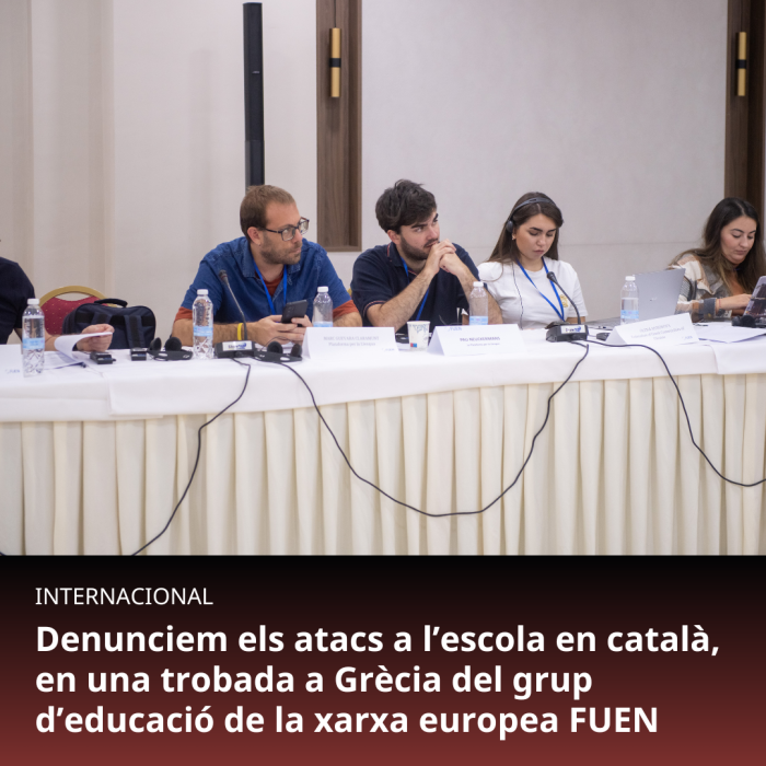 Plataforma per la Llegua va participar aquesta setmana a la trobada anual del grup d'educació de FUEN, la Unió Federal de les Comunitats Nacionals Europees (FUEN), una de les principals organitzacions en defensa de les minories nacionals i lingüístiques. La trobada, que es va celebrar entre el dilluns 10 i el 13 de novembre a les ciutats de Xanthi i Komotini (a la Tràcia Occidental, a Grècia), va permetre conèixer de primera mà els reptes educatius de la minoria turca de Grècia i compartir experiències amb altres minories europees. Plataforma per la Llengua hi va denunciar la caiguda en l'ús social del català i els atacs politicojudicials per evitar dotar l'escola de més eines per reforçar l'aprenentatge de la llengua.