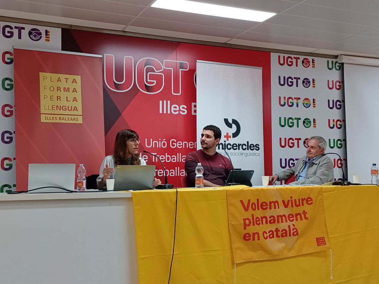 El proppassat 21 de novembre, la seu de la UGT de Palma va acollir el darrer dels actes de Semicercles d'aquest 2025. Semicercles és la marca de Plataforma per la Llengua que agrupa tota la feina de generació de discurs de l'entitat. El cicle d'enguany ha estat dedicat a la relació entre la llengua, la cohesió social i l'ascensor social. L'acte de Palma, inserit en el projecte de col·loquis Més Semicercles, va tractar aquesta qüestió amb un focus en l'impacte que ha tengut el model econòmic turístic de les Illes Balears en la salut del català. Els ponents varen ser la professora de lingüística Laura Camargo i l'empresari Bartomeu Rosselló, president del Cercle Mallorquí de Negocis. El periodista Martí Gelabert es va ocupar de la moderació.