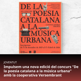 Plataforma per la Llengua i la cooperativa educativa Versembrant tornen a sumar esforços per fomentar l'ús social del català i impulsen una nova edició del concurs per premiar les millors adaptacions de poemes en català a música urbana fetes per joves de 14 a 30 anys.