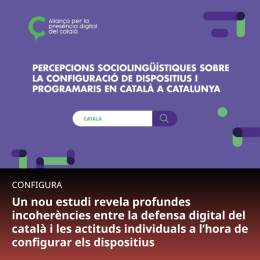 Plataforma per la Llengua alerta que la presència digital del català encara depèn, en gran part, de l'actitud individual dels internautes. Segons un estudi elaborat dins l'Aliança per la presència digital del català, que està impulsant la campanya «Configura (els dispositius en la nostra llengua)» de conscienciació digital, només dos de cada deu catalans procuren «molt» tenir els seus dispositius en català, mentre que un altre 19,6 % ho fa «bastant». Per contra, gairebé el 60 % hi posa «poca o gens» atenció, fet que limita la visibilitat d'una comunitat lingüística sòlida als entorns digitals a l'hora de reivindicar més presència de català als productes, serveis i interfícies electròniques.