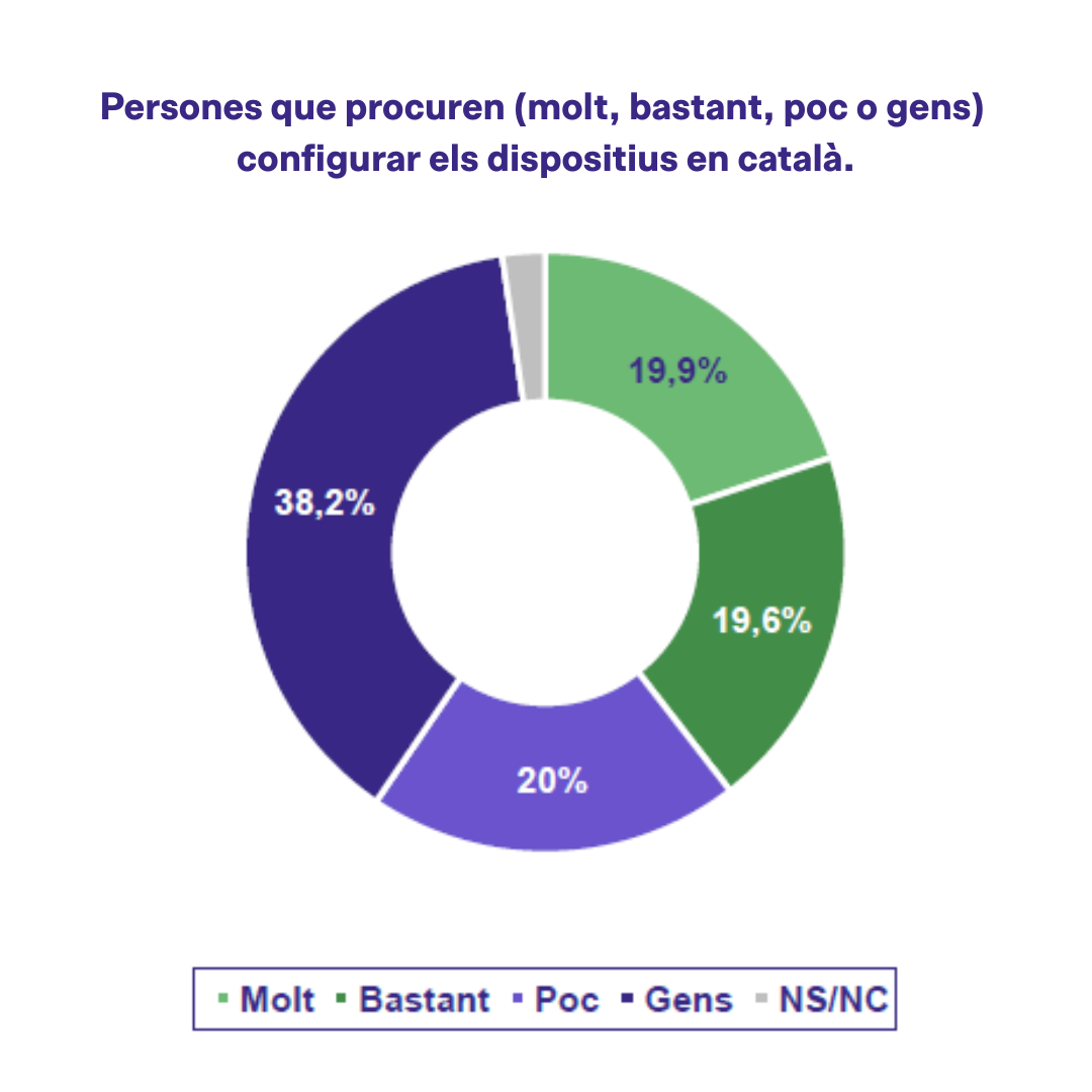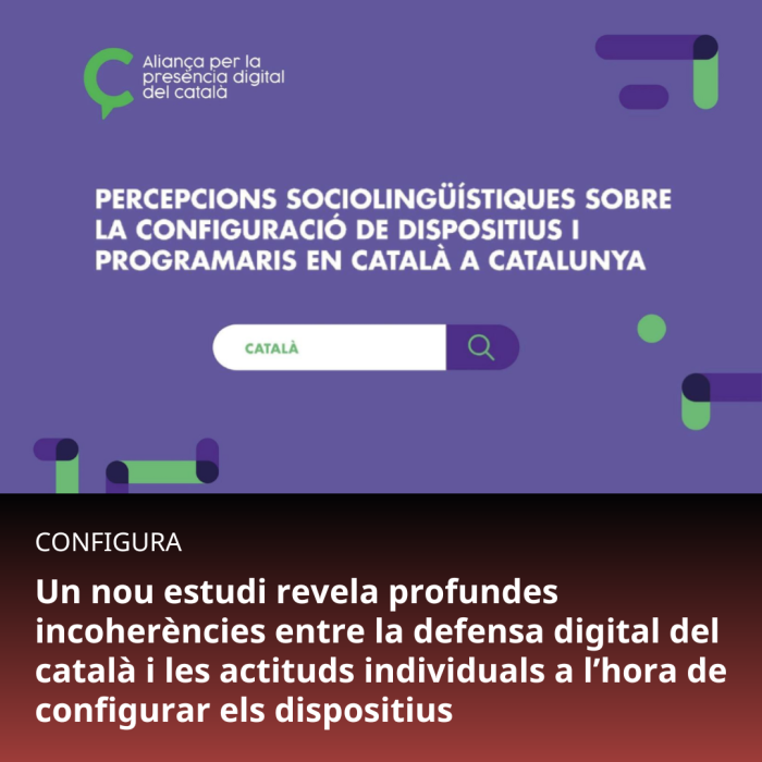 L'estudi, elaborat per l'entitat a partir de dues preguntes encarregades al gabinet estadístic GESOP i que va enquestar 1.601 persones a tot Catalunya, encaixa percentualment amb la dada ja avançada per l'Aliança per la presència digital del català el passat octubre, durant la presentació de la campanya «Configura»: que només entre un 15 % i un 20 % de total de dispositius connectats als territoris de parla catalana a l'Estat espanyol estan configurats en català.