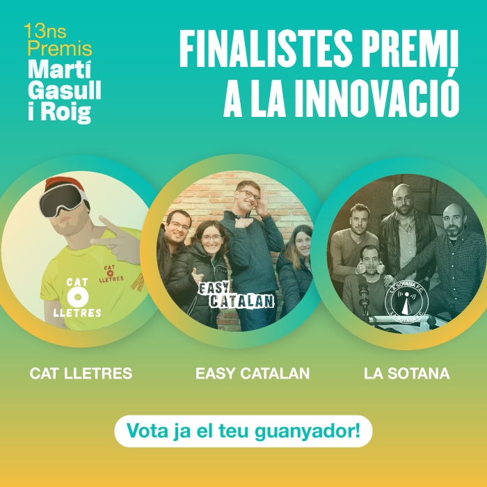 La tretzena edició dels Premis Martí Gasull i Roig ja té designats els finalistes. Enguany passen de tres a sis: es mantenen els tres finalistes per al Premi Martí Gasull i Roig i s'afegeix per primera vegada un trio de finalistes per al Premi a la Innovació. En la primera categoria, dotada amb 3.000 euros, hi competiran la xarxa d'escoles associatives nord-catalanes La Bressola, la revista de còmic Cavall Fort i el Centre Artesà Tradicionàrius de promoció de música i cultura tradicional. Pel que fa a la segona, dotada amb 2.000 euros, els finalistes són el canal de difusió de contingut audiovisual per aprendre la llengua Easy Catalan, el creador de contingut especialitzat en música en català Cat Lletres i el programa de ràdio sobre el Futbol Club Barcelona i el món del futbol, La Sotana. Els premis, que organitza cada any Plataforma per la Llengua, volen reconèixer persones o entitats que hagin destacat en la defensa o la promoció de la llengua catalana.