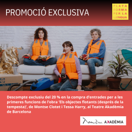 2 - Entra en aquest enllaç i compra les teves entrades per a les funcions del 21 de gener a l'1 de febrer (per gaudir del descompte): Entrades ELS OBJECTES FLOTANTS (DESPRÉS DE LA TEMPESTA) ' Venda Oficial - Teatre Akadèmia