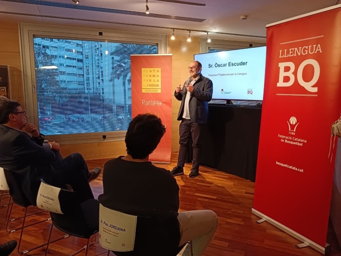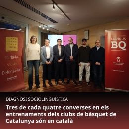 El 75,1 % de les converses que es produeixen als entrenaments dels clubs de bàsquet catalans són en català. Així ho recullen les dades globals de la Diagnosi sociolingüística als clubs de bàsquet de Catalunya, l'estudi encarregat per la Federació Catalana de Basquetbol (FCBQ) a Plataforma per la Llengua que s'ha presentat aquest dilluns 19 de febrer a la seu de la FCBQ, a Barcelona. En l'acte hi han participat per part de la FCBQ el president, Ferran Aril, i la directiva de programes BQ, Eulàlia Vila, mentre que en representació de Plataforma per la Llengua hi han intervingut el president, Òscar Escuder, i el tècnic d'Estudis i Projectes, Pau Jordana.