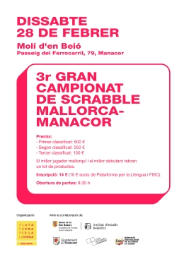 - 20 h - Cloenda del 3r Gran Campionat de Scrabble Mallorca-Manacor