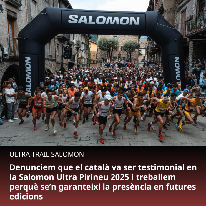 Davant d'aquests fets, l'entitat ja va fer públic el seu posicionament el mes d'octubre a través de les xarxes socials, reclamant a l'organització de la cursa i a les institucions col·laboradores que garantissin la presència del català en futures edicions. Tot i això, no hem rebut cap resposta ni per part de l'organització ni de les administracions implicades. En aquest context, l'entitat manifesta la voluntat d'obrir una nova via de diàleg amb els responsables de la Salomon Ultra Pirineu i amb les administracions corresponents, amb l'objectiu que n'assumeixin la responsabilitat en la defensa dels drets lingüístics, especialment tenint en compte que es tracta d'un esdeveniment amb suport públic i, per tant, susceptible d'incorporar criteris i clàusules lingüístiques que garanteixin l'ús normal del català.