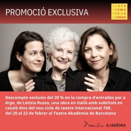 2 - Entra en aquest enllaç i compra les entrades per a les funcions del 20 al 22 de febrer: Entrades ARGO ' Venda Oficial - Teatre Akadèmia