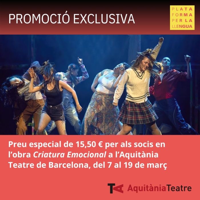 Si ets soci de Plataforma per la Llengua i vols gaudir del preu de 16,50 € en les entrades generals (despeses de gestió no incloses), cal que: