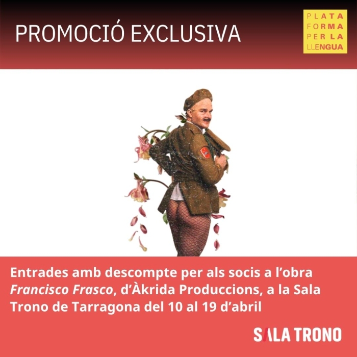 - Envieu un correu electrònic a promocions@plataforma-llengua.cat o truqueu al telèfon 93 321 18 03, i demaneu per l'àrea d'atenció al soci, on us facilitarem el codi promocional per comprar les entrades en línia.