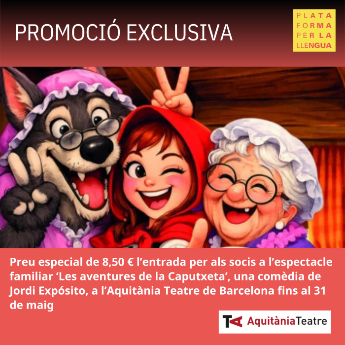 Per a més informació, pots consultar el web: Les aventures de la Caputxeta - Edat recomanada de 02 a 06 anys. ' Aquitània Teatre.
