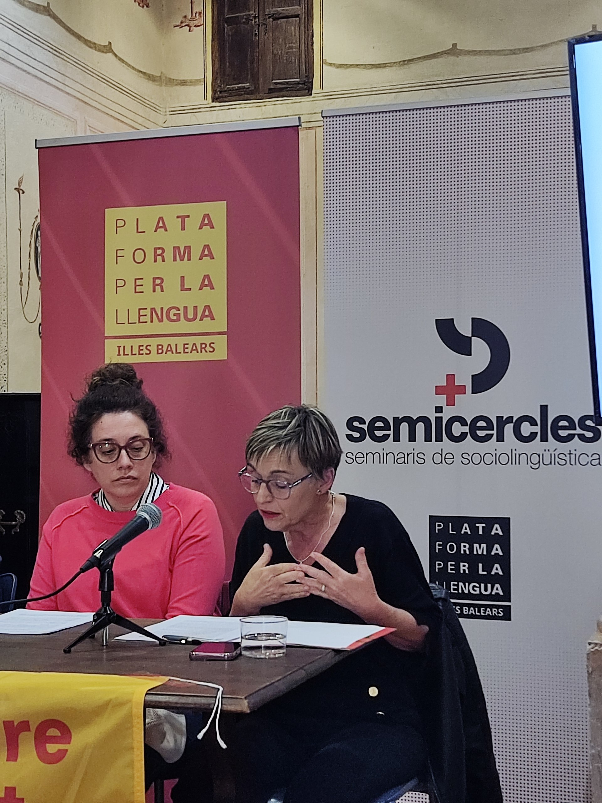 L'acte va comptar amb la intervenció de la professora de Sociolingüística i Lingüística Aplicada a la UIB, Rosa Calafat, i de l'advocat i assagista Sebastià Frau. Marina Garcias, delegada de Plataforma per la Llengua a les Illes Balears, en feu la moderació.