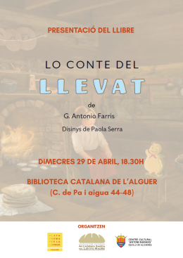 "Lo conte del Llevat" publicat de Carlo Delfino Editore i il·lustrat de Paola Serra, conta als minyons lo màgic món de la fermentació natural i dels processos que permitin la creació, l'ús i la conservació del llevat. La traducció en alguerés del text, ja editat en italià l'any 2024, volguda de Plataforma per la Llengua i del Centre Cultural Antoni Nughes, és estada curada de Maria Antonietta Salaris, Irene Coghene i Mauro Mulas. La tardada, amb entrada lliure, preveu la participació de l'autor i dels traductors. En aqueixa ocasió siguerà en venda lo llibre.