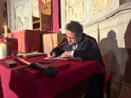 L'acte de lliurament va tenir lloc a les 18 h a l'Església de Santa Maria la Major de Montblanc, i va comptar amb els parlaments institucionals de Maties Martí, president de l'Associació Medieval; Joan Canela, president del Consell Comarcal de la Conca de Barberà; Raquel Sans, vicepresidenta primera del Parlament de Catalunya, i Marc Vinya, alcalde de Montblanc. Van ser Sant Jordi i la princesa d'aquesta 39a Setmana Medieval els que van lliurar l'Espasa d'Honor al secretari de l'entitat, en un acte solemne en el qual el representant de Plataforma per la Llengua també va signar el llibre d'honor de la institució cultural.