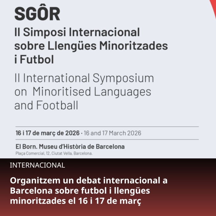 Plataforma per la Llengua impulsa el II Simposi Internacional sobre Llengües Minoritzades i Futbol els dies 16 i 17 de març al Born - Museu d'Història de Barcelona, amb la col·laboració de l'European Center for Minority Issues